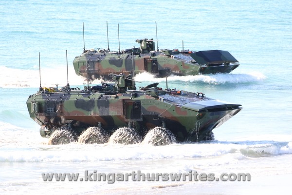 This was the eighth time that King Arthur’s Writes had attended a Talisman Sabre exercise in Australia. Alas, it is probably the last one too, for the authorities are making it just too difficult to get decent access. Media access to events such as urban assaults or manoeuvre warfare “in the box” of training areas was once possible, but no more. Instead, the powers-that-be are content to open up just a couple of main events (e.g. the opening firepower demonstration and an amphibious landing), and unfortunately they provide few opportunities beyond that.